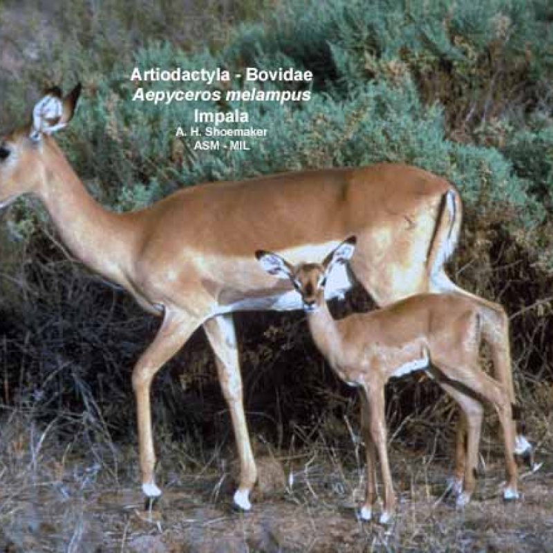 Side view, female with young. Also as Common Impala.