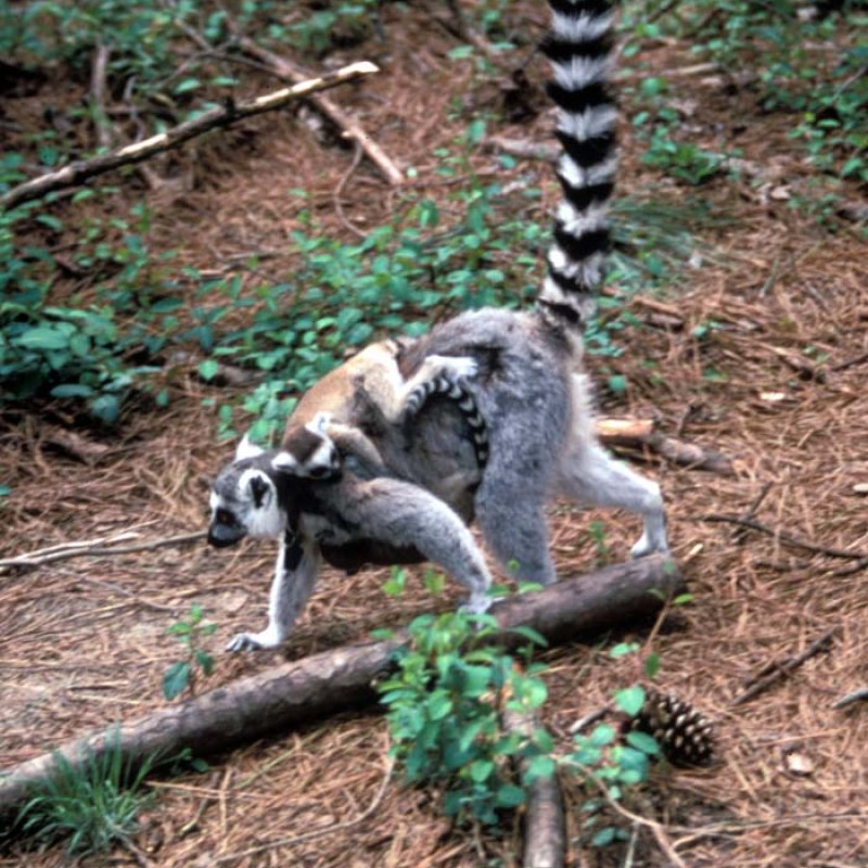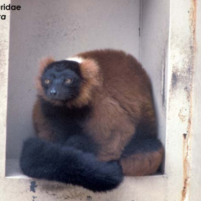 Frontal, side and oblique view of 3 captives, Varecia variegata subcincta. Also as Pied Black-and-white Ruffed Lemur|Variegated Ruffed Lemur.