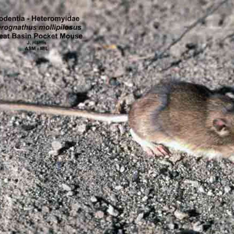 Side view of captive, Perognathus mollipilosus xanthanotus. Formerly Perognathus parvus.