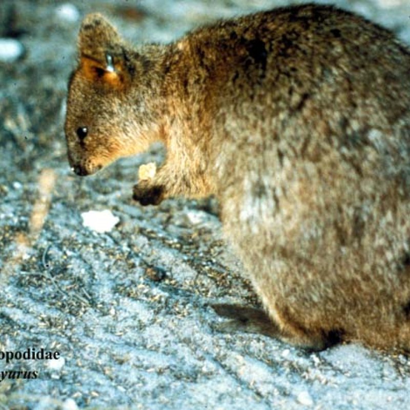 Oblique view of mother with large joey in pouch. Also as Tasmanian Pademelon.