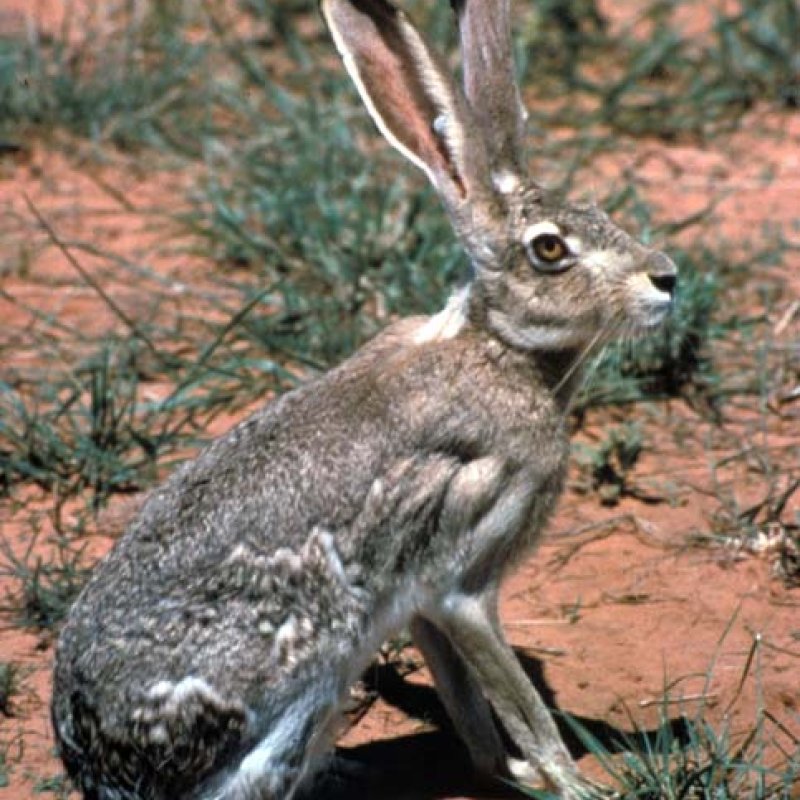 Lateral view of individual reclining on ground in shade of shrub, S. a. cedrophilus
