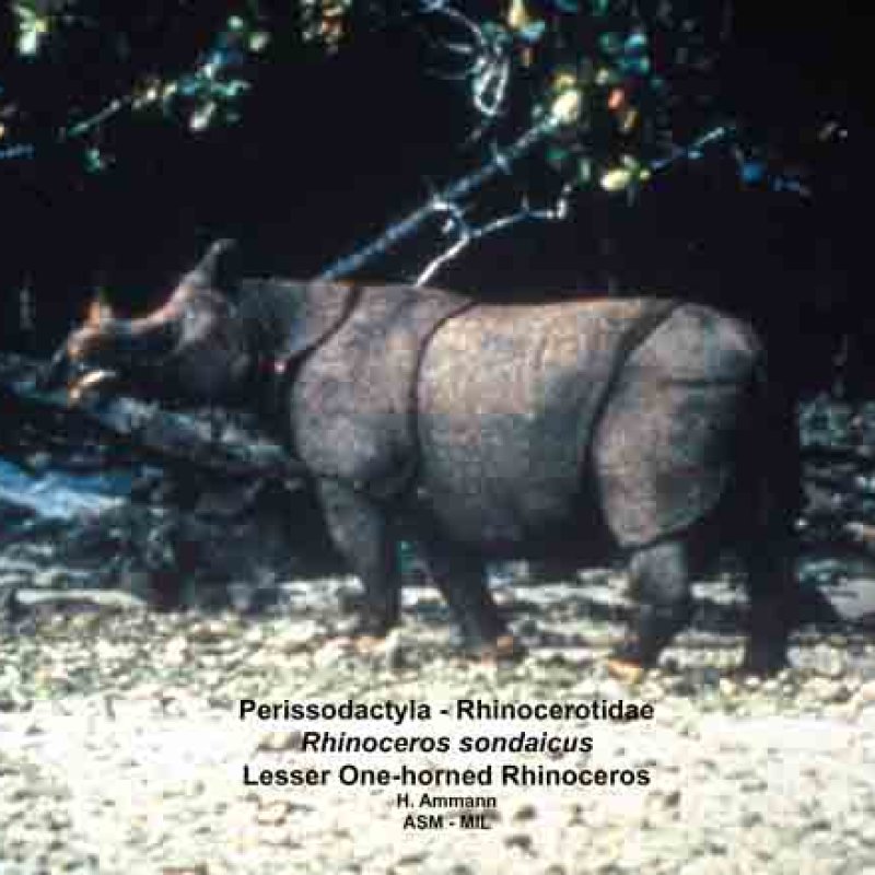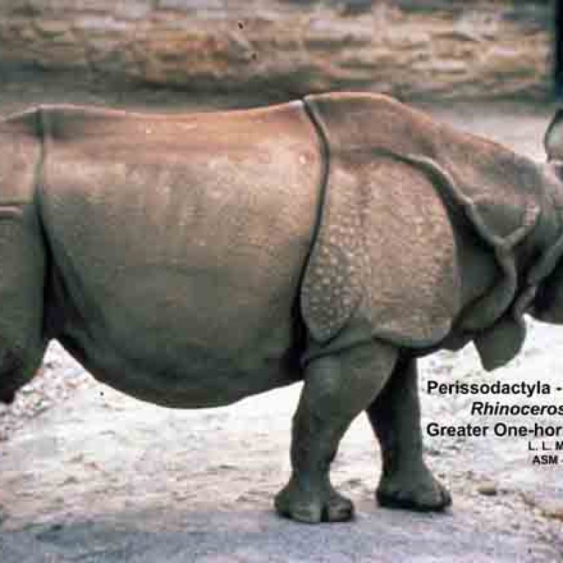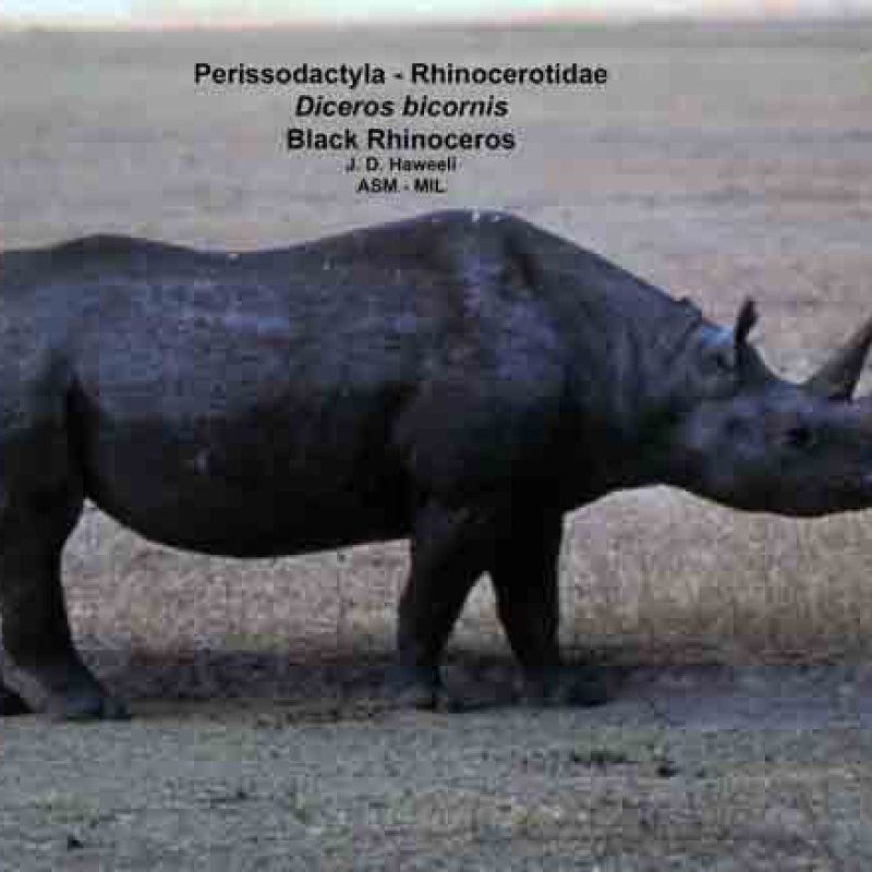 Side view, horns unusually long. Also as Hook-lipped Rhinoceros|Prehensile-lipped Rhinoceros.