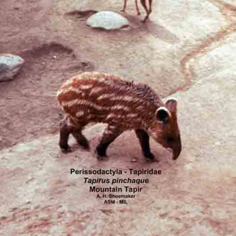 Young in striped and spotted coat. Also as Andean Tapir|Woolly Tapir.