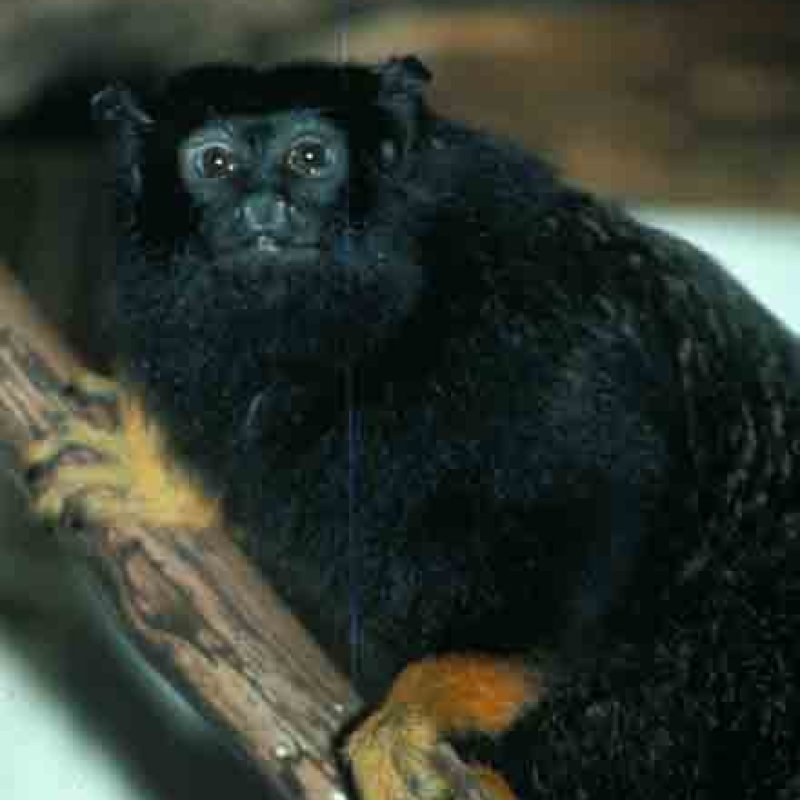 Front view. Formerly Leontocebus nigricollis. Also as Black Mantle Tamarin|Graells's Black-mantled Tamarin|Graells's Tamarin|Hernández-Camacho's Black-mantled Tamarin|Spix's Black-mantled Tamarin. Formerly Cebidae (Callitrichinae).