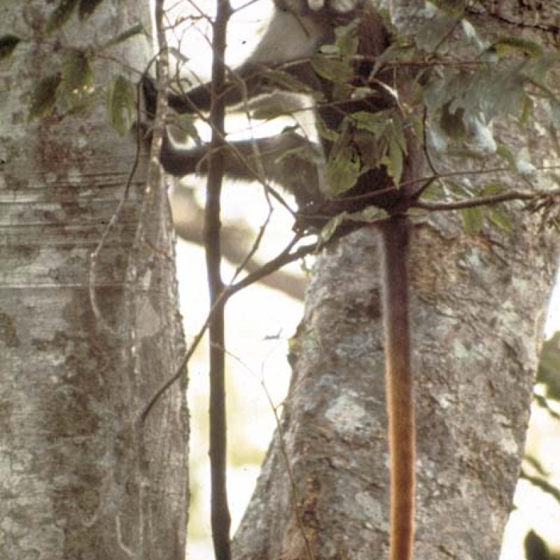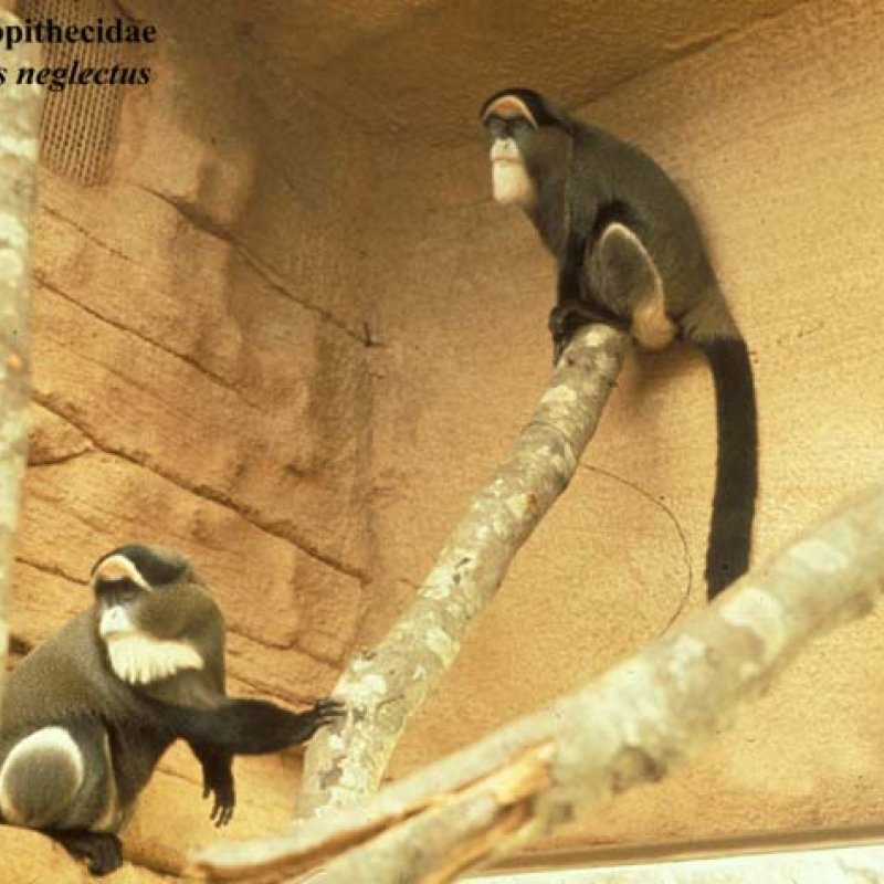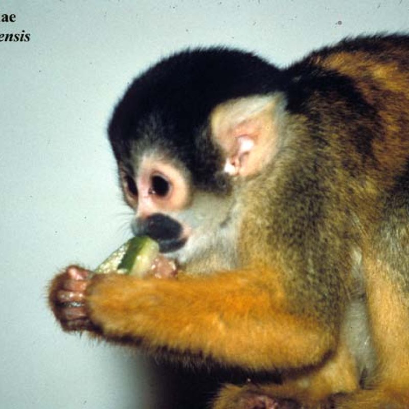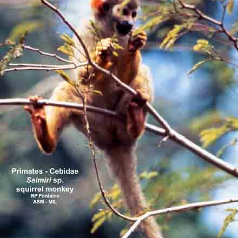 Sitting on branch, front view. Formerly Leontocebus tripartitus. Also as Golden-mantle Saddleback Tamarin|Golden-mantled Tamarin. Formerly Cebidae (Callitrichinae).
