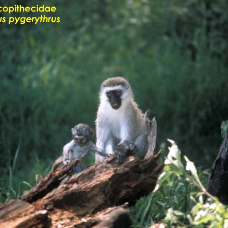 Mother and infant. Chlorocebus pygerythrus hilgerti, Hilgert's Vervet Monkey.