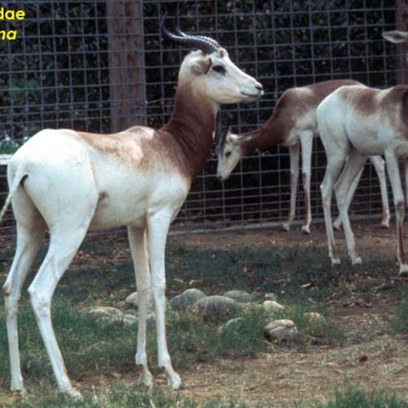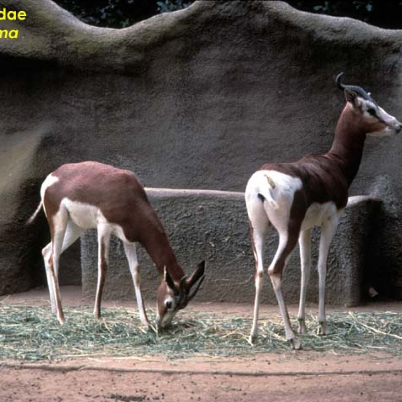 Two individuals, one feeding, Nanger dama mhoor (may be extinct in the wild).