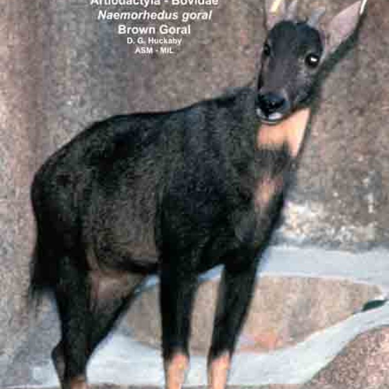 View from front, feet visible. Also as Nemorhaedus goral. Formerly as Naemorhedus griseus, Chinese Goral.