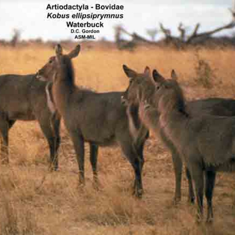 Male with females. Kobus ellipsiprymnus ellipsiprymnus. Also as Kobus ellipsiprymnus, Ellipsen Waterbuck.