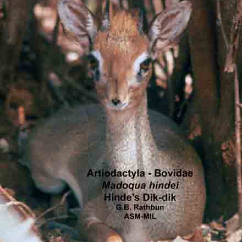 Side view of male, (shoulder height 300-400 mm). Formerly as Madoqua kirkii hindei, Kirk's Dik-dik.