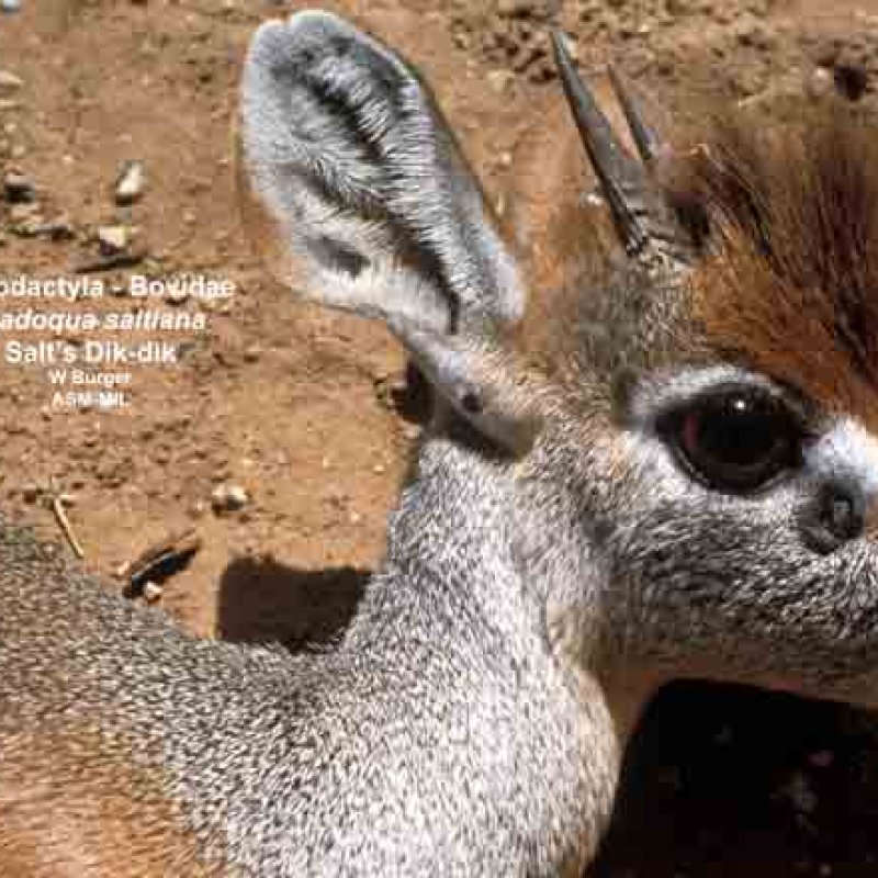 Close-up of male's head. Madoqua saltiana hararensis. Also as Madoqua hararensis, Harrar Dik-dik.