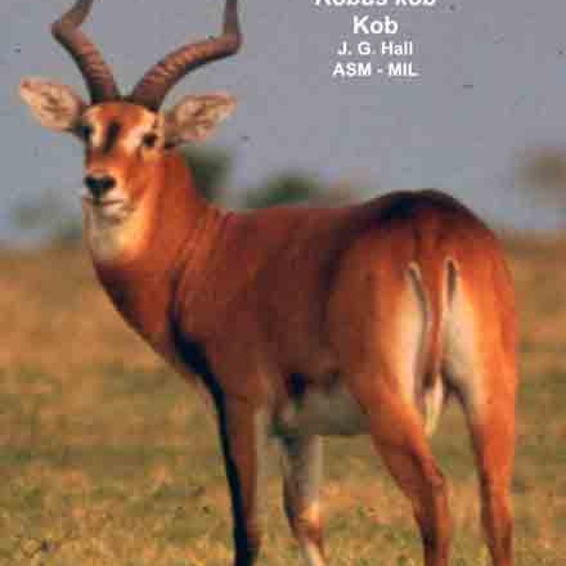 Side view of standing male. Kobus kob thomasi. Also as Kobus thomasi, Uganda Kob|Thomas's Kob.