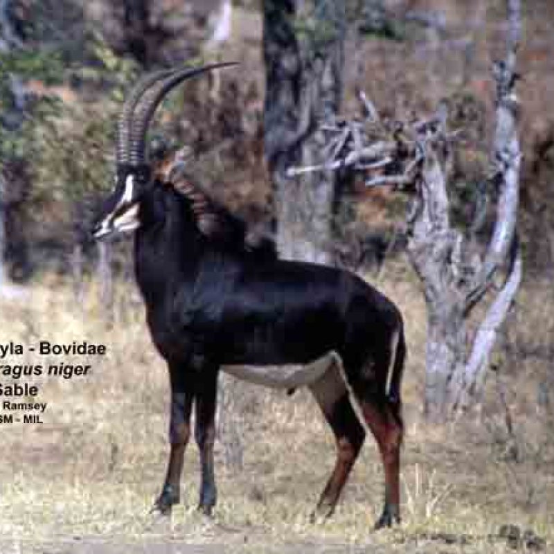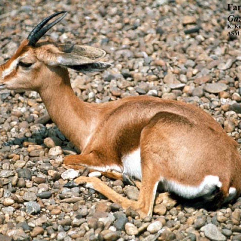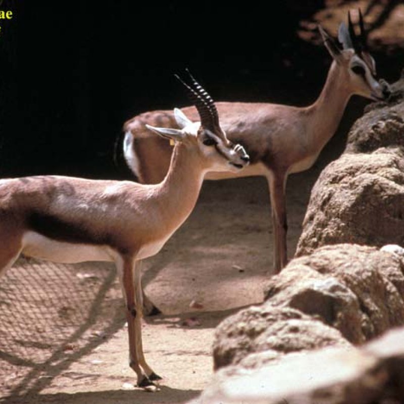 Side view, standing, male. Gazella leptoceros leptoceros.