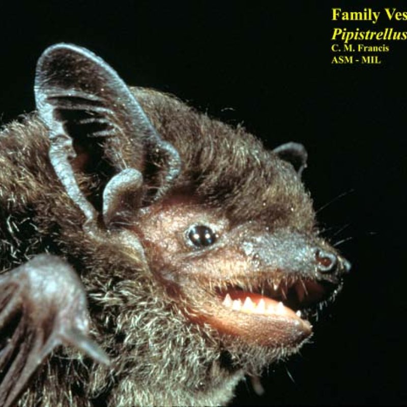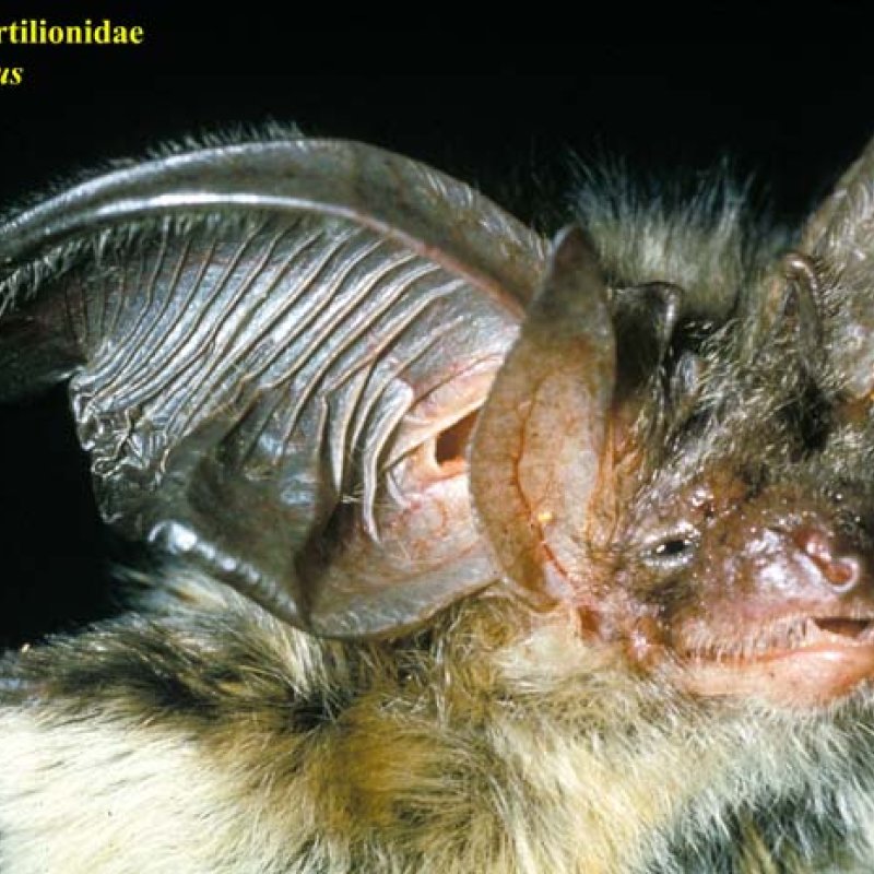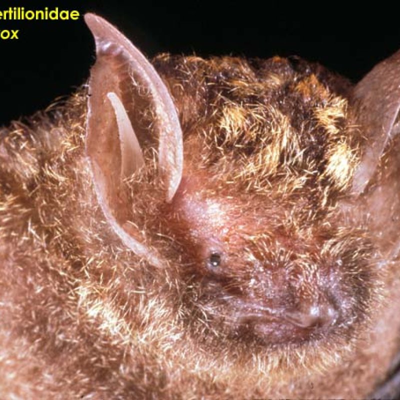 Bat hanging from cave roof, covered with dew. Formerly Pipistrellus subflavus, Eastern Pipistrelle.