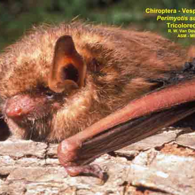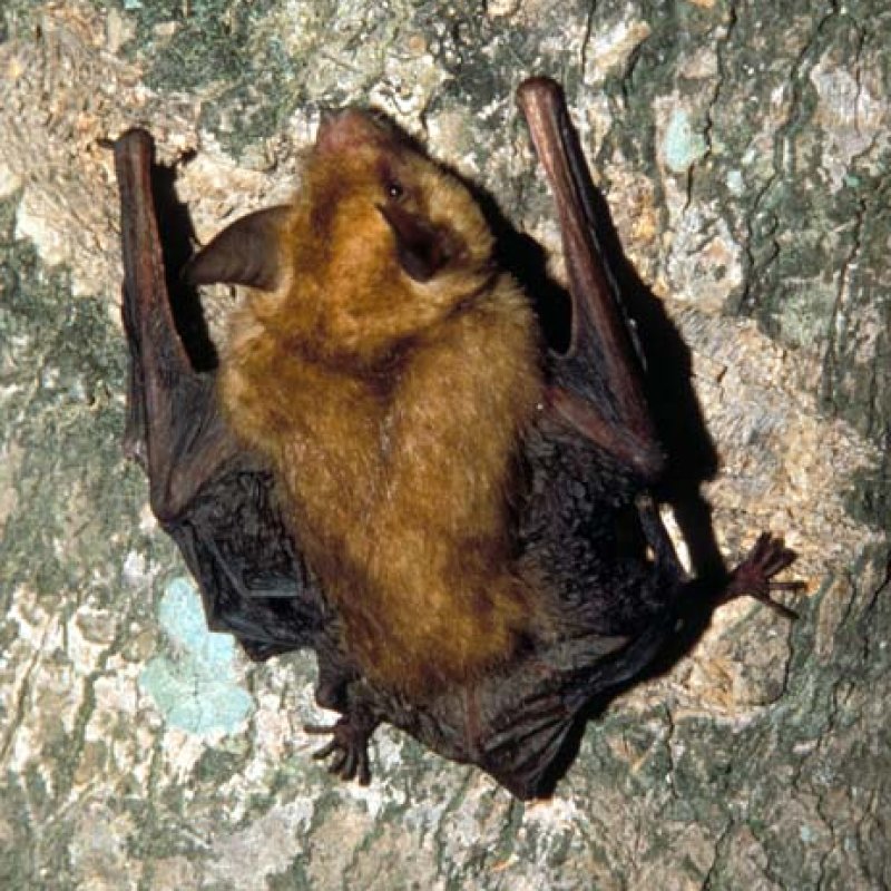Close-up view on tree trunk. Formerly Pipistrellus subflavus, Eastern Pipistrelle.