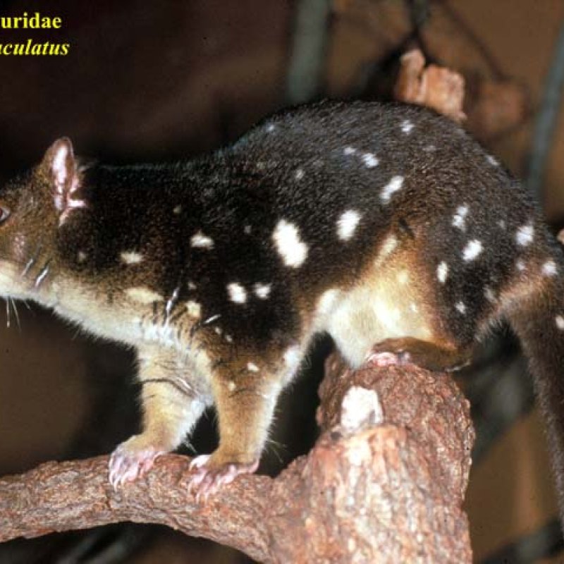 Side view, on branch, tip of tail not in view. Also as Tiger Quoll.