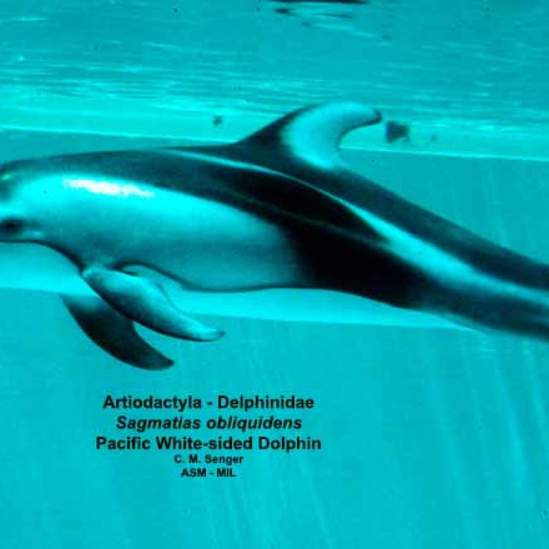 Ventrolateral view. Formerly in order Cetacea. Formerly Lagenorhynchus obliquidens.