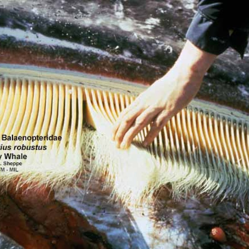 Close-up of baleen, some held aside to show structure and arrangement. Formerly in order Cetacea. Formerly in Eschrichtiidae.