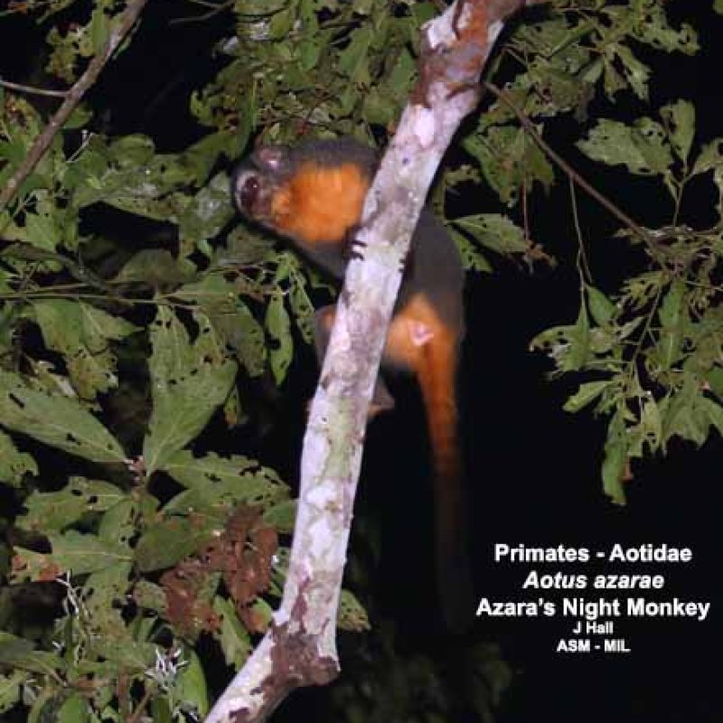 Formerly in Cebidae. Also as Azara's Owl Monkey|Bolivian Night Monkey|Feline Night Monkey.