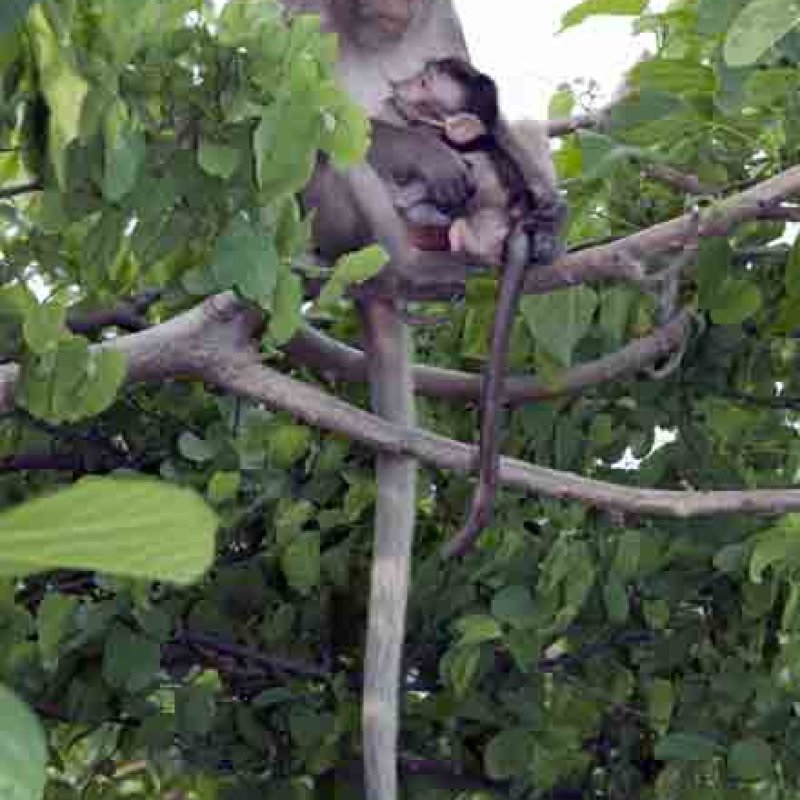 Adult female suckling infant. Also as Rhesus Monkey.
